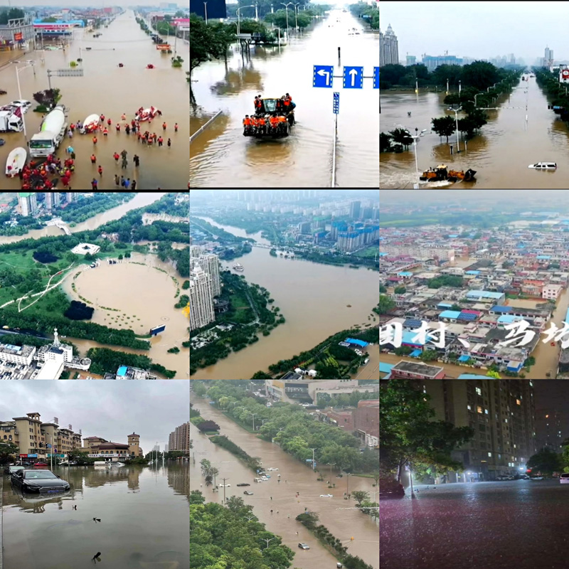 從航拍可以看到新鄉(xiāng)市衛(wèi)河兩岸大面積村莊、社區(qū)、農(nóng)田、道路被洪水淹沒,村莊的村民大部分已疏散轉(zhuǎn)移至附近救助點。面對災情,我們一條心,共抗洪水!單位同事24小時參與搶險救援,保障公司財產(chǎn)損失降到最低。7月20日至7月21日暴雨持續(xù)兩天兩夜,從來沒覺得下雨是件可怕的事情,這次的暴雨下的讓人揪心,暴雨后的第二天整個新鄉(xiāng)市及周邊縣區(qū)全部被淹,全國各地救援志愿者紛紛趕來救援,讓新鄉(xiāng)人民感到非常的暖心!