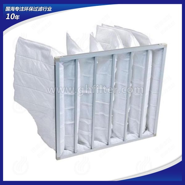 中央空調(diào)及通風(fēng)系統(tǒng)前端通常會(huì)配有初效板式空氣過濾器與中效袋式空氣過濾器。初效板式空氣過濾器作為最前端的預(yù)過濾處理設(shè)備,主要過濾通風(fēng)系統(tǒng)中5μm以上的粉塵粒子,而中效袋式空氣過濾器主要過濾通風(fēng)系統(tǒng)中1-5μm的粉塵粒子懸浮物。中效袋式空氣過濾器與初效板式空氣過濾器在使用更換過程中有些相同,都在通風(fēng)系統(tǒng)中具有阻力小,容塵量大,更換方便的特點(diǎn),因此被很多行業(yè)所采用。袋式中效過濾器,可用于空調(diào)系統(tǒng)的中級(jí)過濾,以保護(hù)系統(tǒng)中下一級(jí)過濾器和系統(tǒng)本身,在對(duì)空氣凈化潔凈度要求不嚴(yán)格的場所,經(jīng)中效過濾器處理后的空氣可直接送至用戶。鋁框袋式過濾器采用優(yōu)質(zhì)合成纖維或進(jìn)口玻璃纖維為濾材,鋁合金型材外框,內(nèi)部噴塑冷拔絲支撐架。國海袋式過濾器有效過濾面積大,容塵量大,阻力小,通風(fēng)量大;框架及支撐架均可重復(fù)使用,更換過濾器時(shí)僅需更換過濾袋,且方便快捷,大大降低運(yùn)行成本費(fèi)用。廣泛應(yīng)用于電子、制藥、醫(yī)療、食品等行業(yè)的過濾系統(tǒng),是目前結(jié)構(gòu)最好的中效過濾器。
